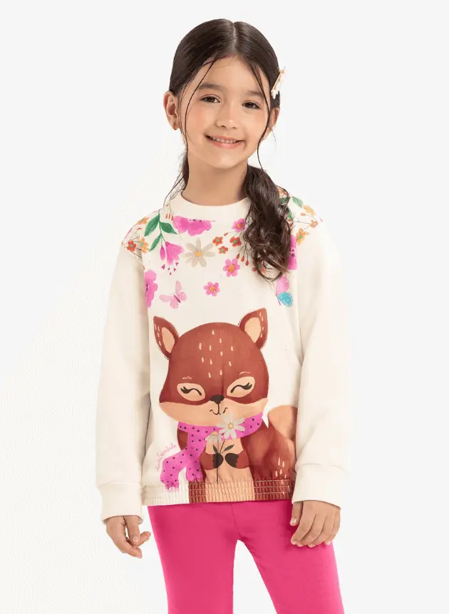 O Conjunto Infantil Blusão com Legging Rovi Kids é a escolha perfeita para aliar conforto e estilo. Confeccionado em moletinho fluffy, moletom e molecotton, proporciona maciez e aconchego para os dias mais frescos. O blusão destaca-se pela sublimação charmosa na parte frontal, complementada por detalhes em strass que adicionam brilho e delicadeza ao look. A legging possui cós elástico, garantindo ajuste ideal e liberdade de movimento. Um conjunto prático e encantador para todas as ocasiões!